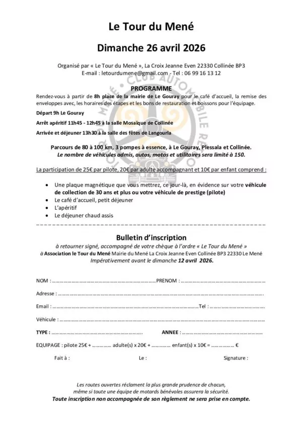 Tour du Mené - Rallye de voitures et motos anciennes