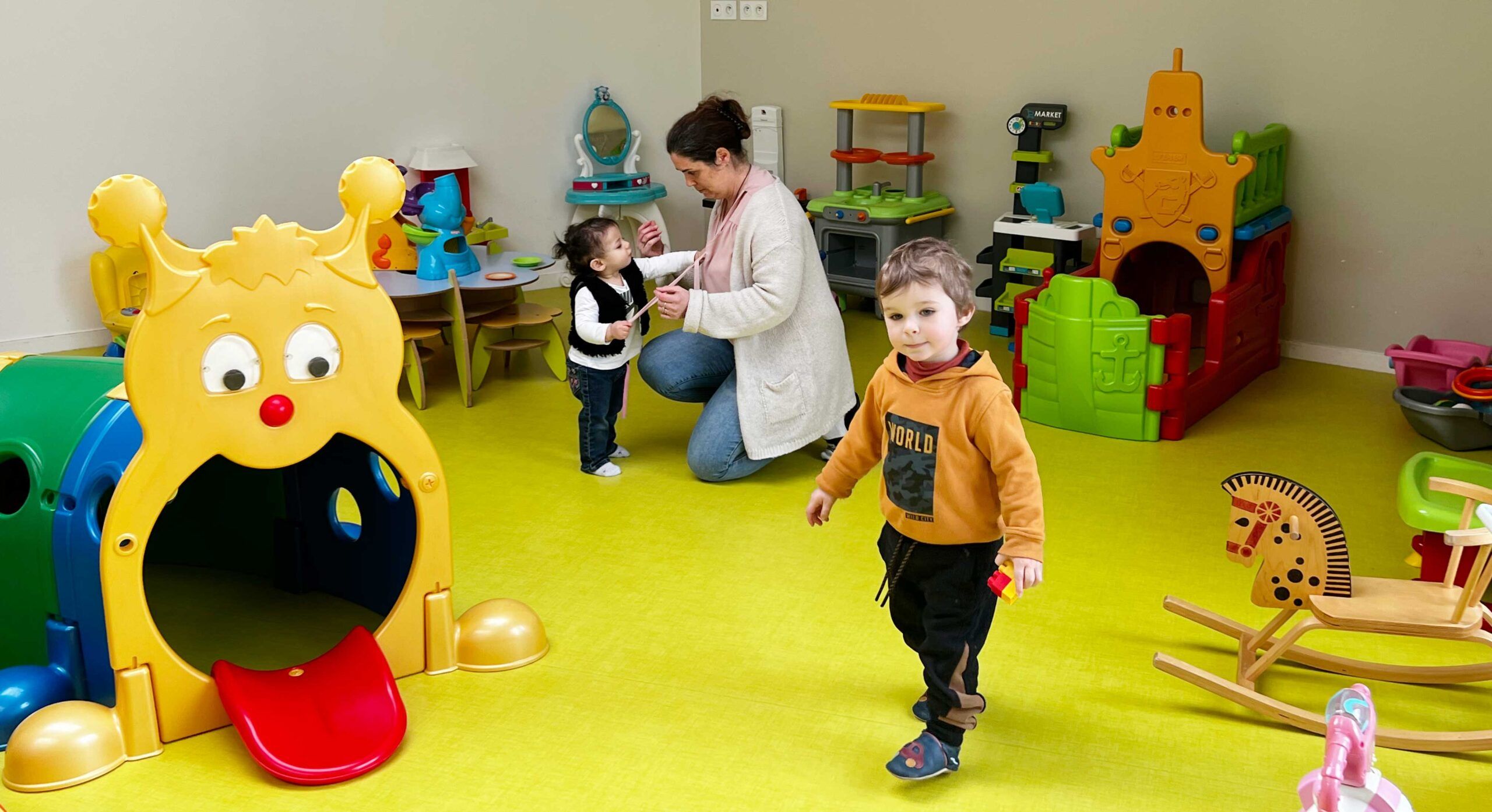 Chaque jour, Delphine et Myriam accueillent jusqu’à 10 enfants (dont 8 simultanément), âgés de 6 mois à 2 ans, dans un espace pensé pour le bien-être et l’épanouissement :